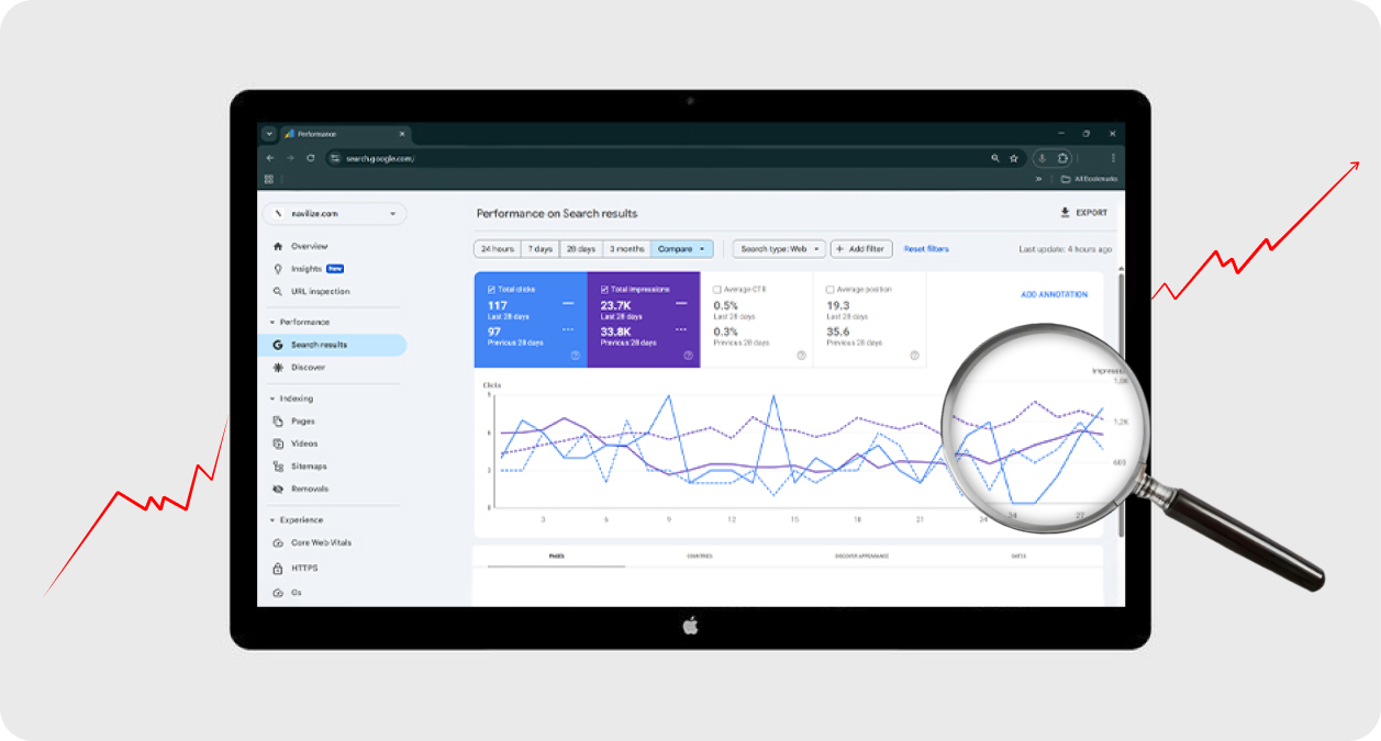 در پروژه‌ی Navilize، تیم میزبان با اجرای استراتژی‌های دقیق سئو، بهینه‌سازی فنی و تولید محتوای هدفمند، رشد چشمگیری در نتایج جستجو ایجاد کرده است.